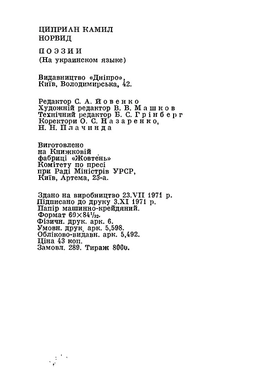 - Ципріян Норвід. Лірика і друк (стихотворение, перевод В. Коротича), стр. 139