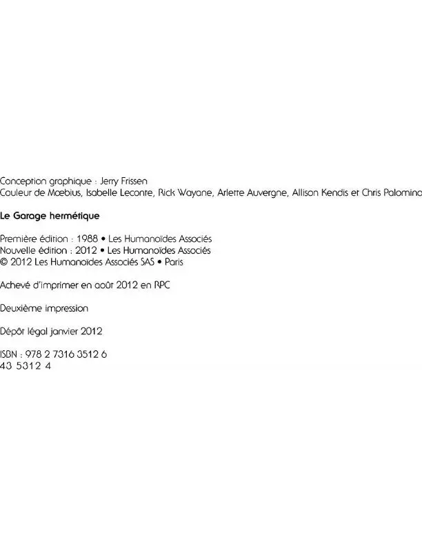 Примечание: Couleur de Moebius, Isabelle Leconte, Rick Wayane, Arlette Auvergne, Allison Kendis et Chris Palomino |