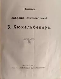 Полное собрание стихотворений В. Кюхельбекера