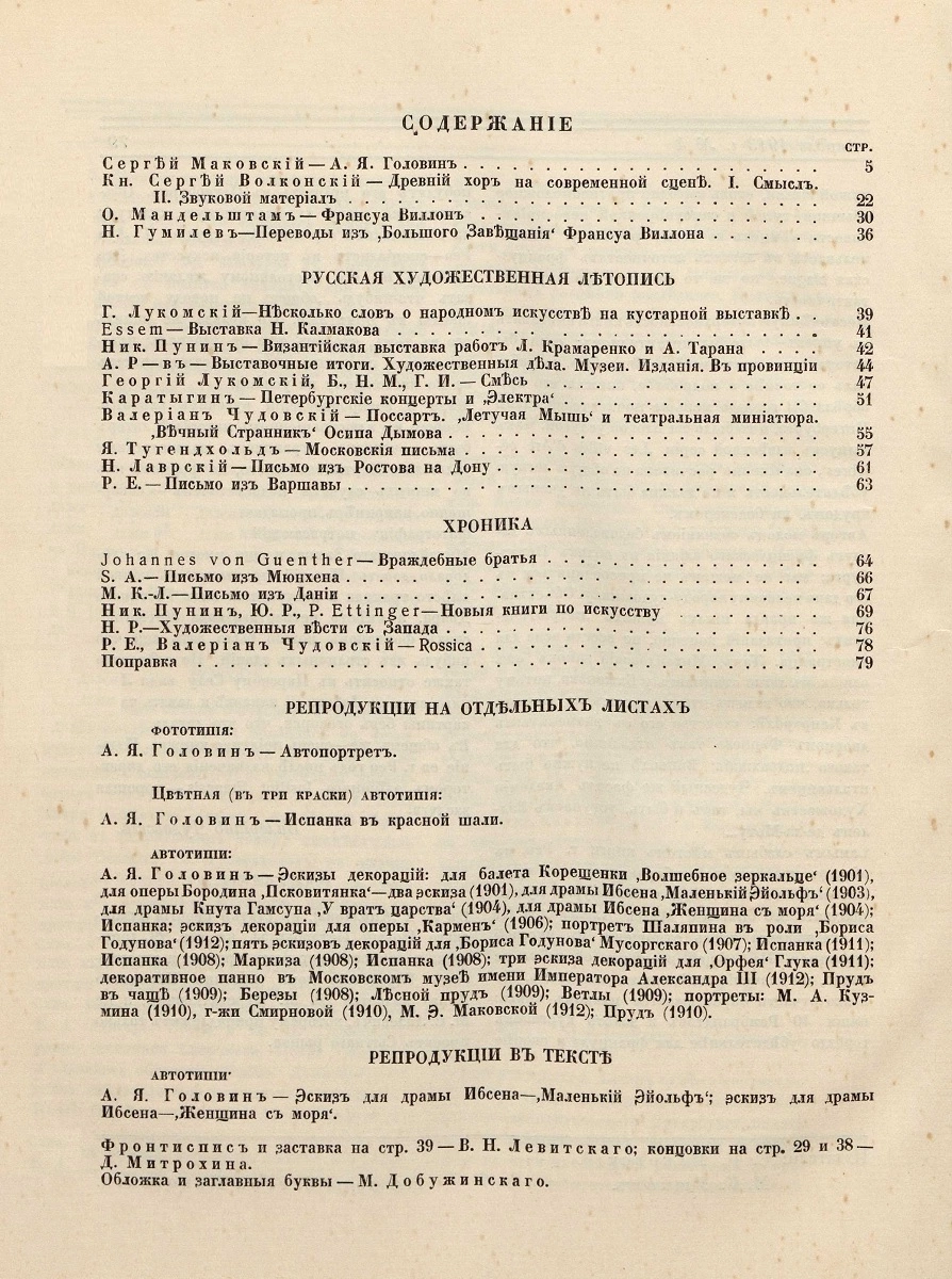 - Сергѣй Маковскій. А. Я. Головинъ (статья), стр. 5-21