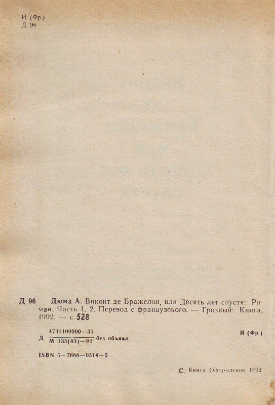 Описание: Начало заключительного романа трилогии о мушкетёрах. Художник не указан. Содержание: