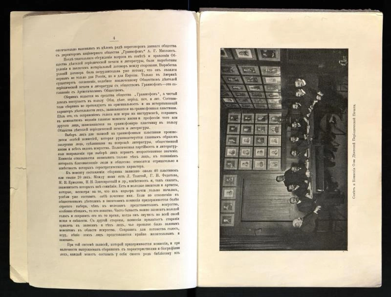 Описание: Писатели, общественные деятели и артисты, записавшие свои голоса или музыкальные исполнения, в пользу Общества деятелей периодической печати на пластинках Акционерного Общества Граммофон. Выпуск 1-й. Содержание: