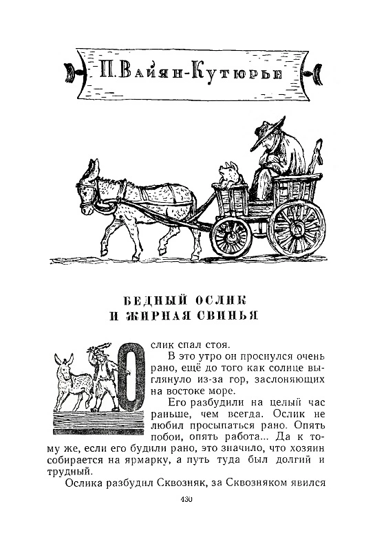 - Бедный ослик и жирная свинья (сказка, перевод Э. Шлосберг, Т. Габбе, А. Любарской), стр. 430-446
