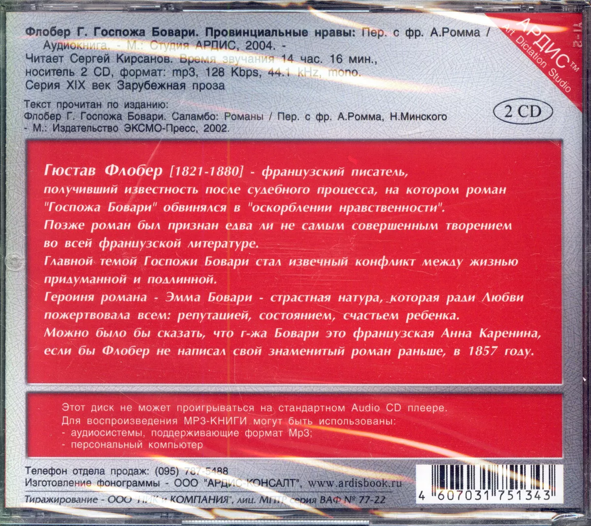 Описание: Монолог. Текст читает Сергей Кирсанов. Качество: 128 кБ/с; 44,1 кГц; Моно Носитель: 2 CD; Объём 785,6 МБ. Содержание: