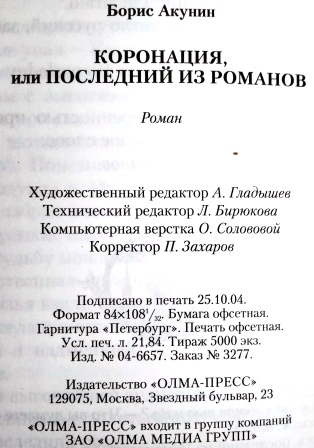 Борис Акунин «Коронация, или ПОСЛЕДНИЙ ИЗ РОМАНОВ»