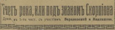 Гнёт рока (Под знаком Скорпиона) Драма 1916, Россия