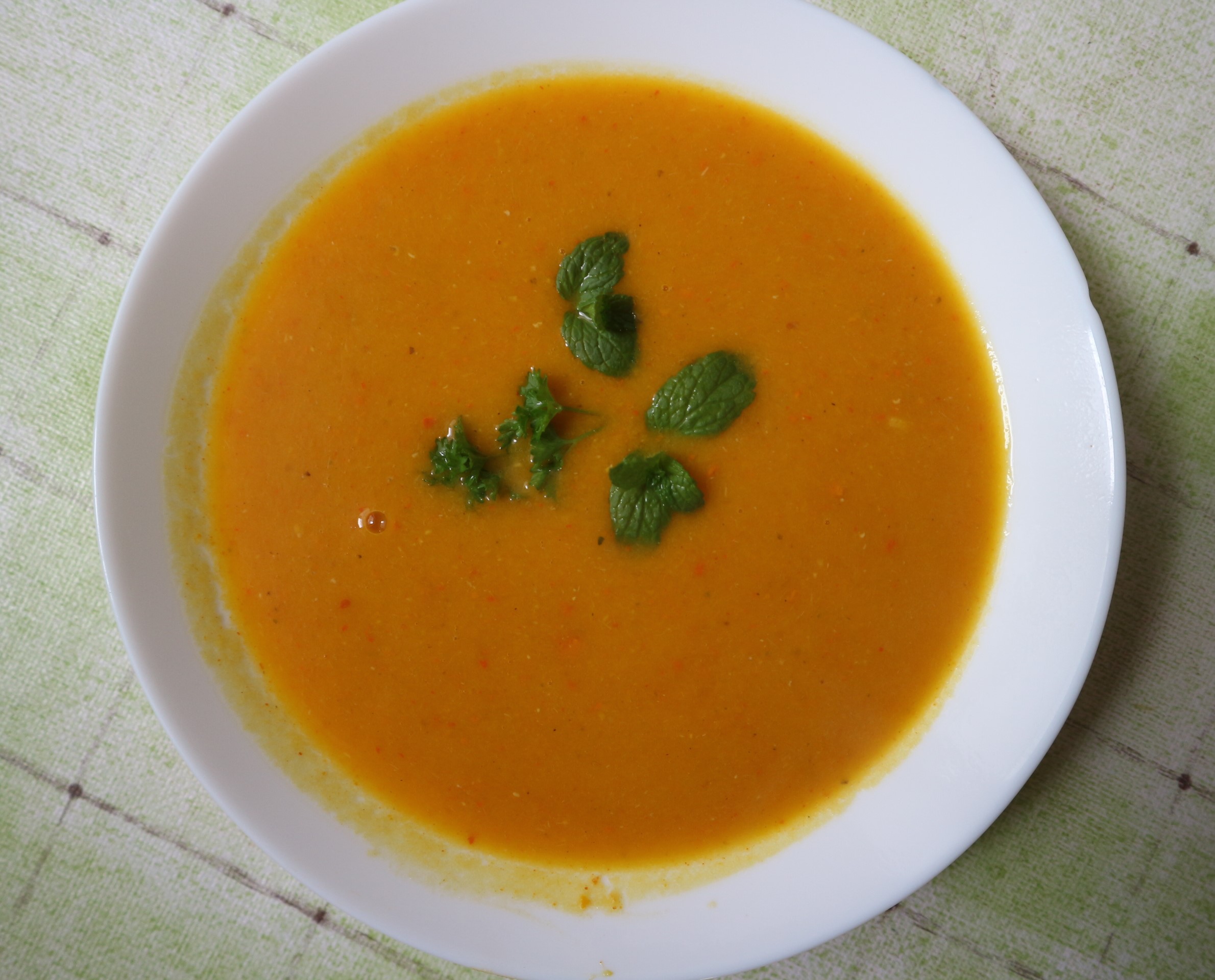 Сегодня супруга изготовила суп. (Супы она делает очень редко) Причина — освободить чуток морозилку. Состав: тыква "Хоккайдис", красная чечевица, батат, куриный бульон из банки.