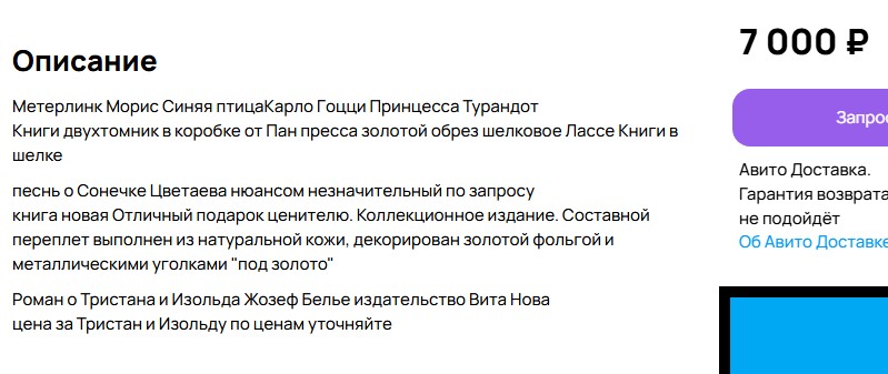 С этими ужимками и переписываниями текстов объявлений страсть как смешно в итоге получается. Вот два объявления. В первом — фотографии четырех книг, но к какой именно относится указанный в объявлении ценник — однозначно неясно даже из описания, есть люфт для неправильного понимания текста. Во втором объявлении цена за один том, но не указано за какой именно том, и как вообще может кто-то купить выборочно один том из "Войны и мира"? Продают ли обувь в магазинах с надписью "Цена за один ботинок"?