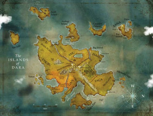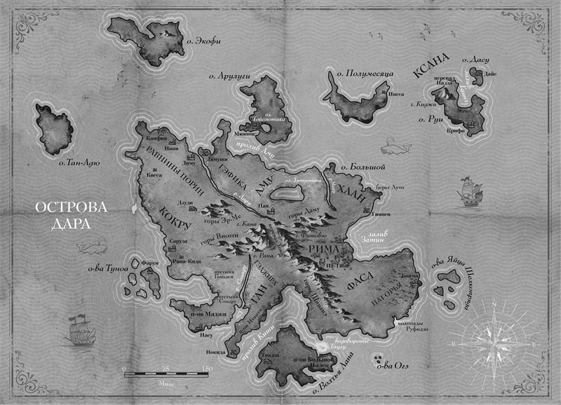 Читаю Милость королей Кена Лю. Глава 12 ---------------------- В северной части Большого острова, Шилуэ, внук последнего короля Фасы, вернул себе трон в Боаме, .... На востоке потомок боковой ветви правящего дома Гана объявил себя королем Дало из Гана, с... Между тем города полуострова Маджи, находившиеся к югу от пустыни Сонару, заявили о своей независимости... На западе народ Аму, известный изяществом и мудростью, возродил свое государство на красивом острове Арулуги,... ---------------------- Читаю поглядывая на карту и что-то не сходится у меня. Сошлось только когда нашел оригинальную карту.