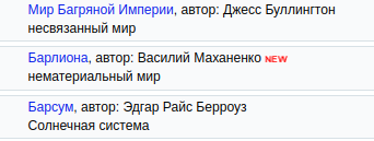 - при просмотре состава циклов теперь используется куда больше значков для обозначения типа произведения слева от названия. Раньше была огромная категория работ, обозначаемых полым квадратом, от короткой прозы до неведомых зверушек. Теперь тот квадрат остался только для рассказов и сказок, мелкие стихи обозначаются полым кругом, поэмы — закрашенным, полым ромбом обозначается обычный нонфикшен, закрашенным — научная литература, наупоп и справочники/энциклопедии, пьесы и сценарии — зачёркнутым квадратом, а для всего непонятного и разных отрывков используется значок из четырёх точек. Так будет намного легче понять, что какой-то сборник или цикл состоит например из стихов или статей по большей части. Конкретный тип можно посмотреть во всплывающей подсказке над каждым значком. Увидеть всё это разнообразие можно например на странице Артурианы.