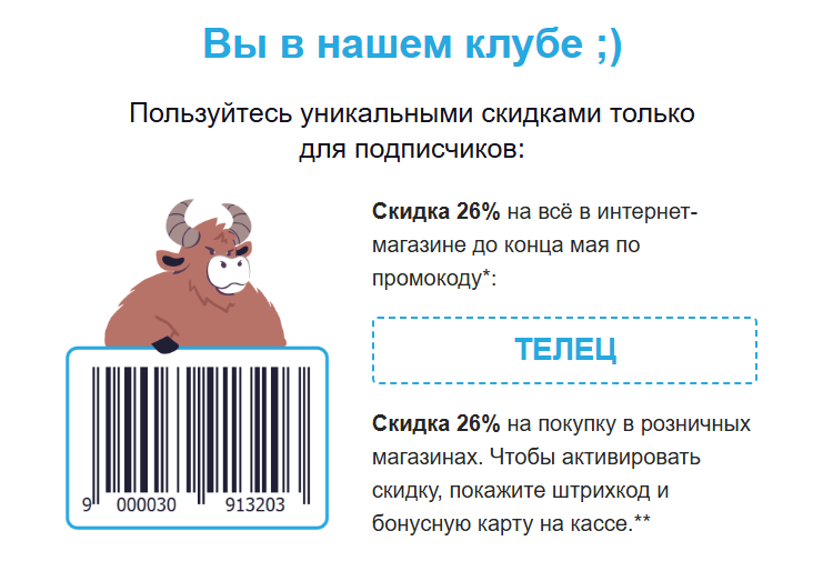 цитата AnilazorЭтот штрих код и для Читай города актуален на всё лето! В том-то и дело, что нет. Может, по цифрам он и такой же, но в реальности сегодня с этим штрих-кодом Читай-город скидку не дал: кассир сказал, что у него мелкими буквами пишет о неправильности. В мае были для Буквоеда слово "Труд", а для Читай-города "Телец". Сейчас, в июне, для Буквоеда штрих-код с кодовым словом прислали, а для Читай-города — нет. Подумала, может, только мне не прислали, а кто-то получил, потому и спросила.
