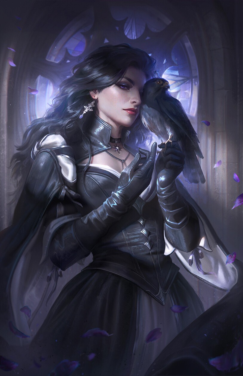 Автора саги о «Ведьмаке» спросили, есть ли какая-нибудь «официальная» версия его персонажей. Сапковский решил поговорить только о черноволосой чародейке. Писатель назвал двух художников, которым удалось запечатлеть героиню такой, какой он сам ее представлял. Один нарисовал обложку для испанской версии книги, другой — для французской.