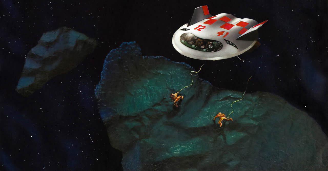 [на астероиде построена космоверфь, где под управлением громадного компьютера создают и испытывают космические корабли]