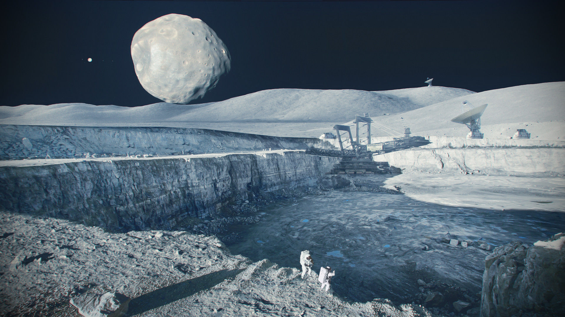 [главный герой с напарником отправляется на один из астероидов для постройки промежуточной космической базы]