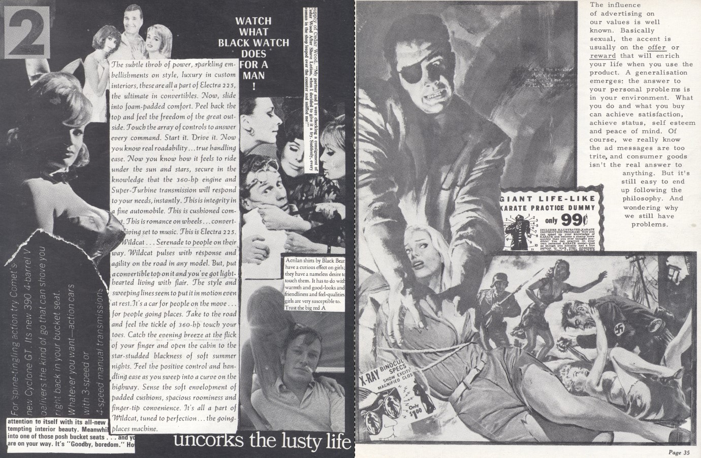 Разворот для Kazoo Джеймса Салиса (NW #174, август 1967, с коллажем Вивьен Янг)