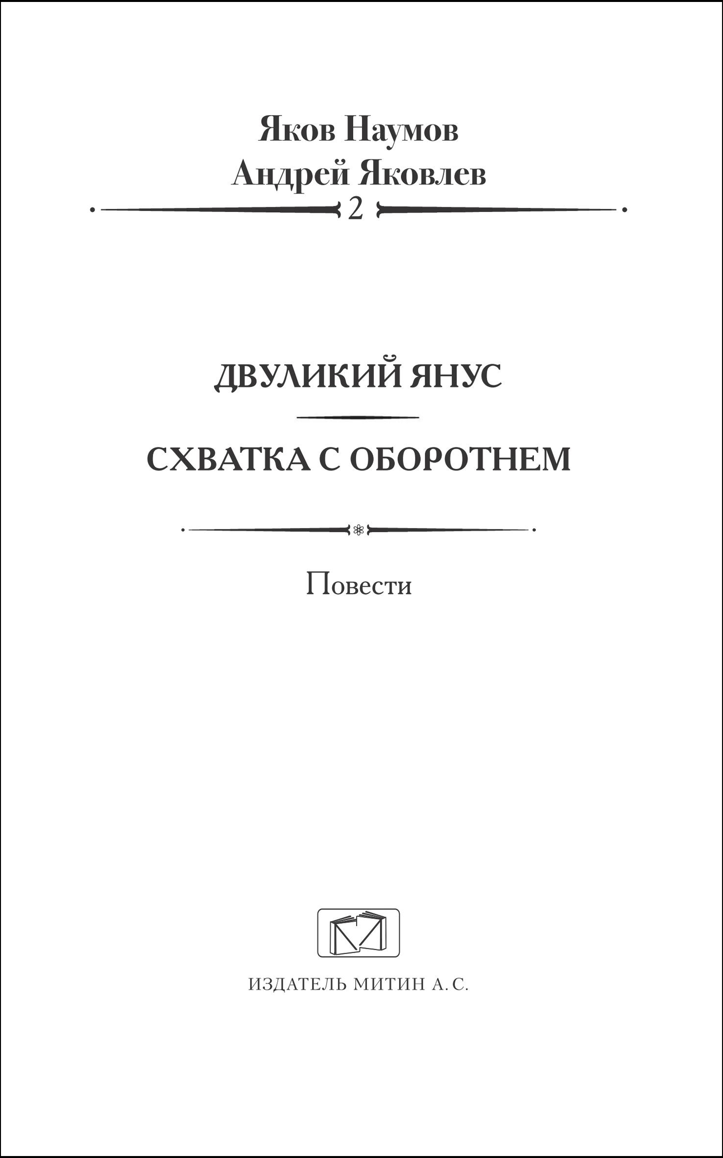 Наумов Я., Яковлев А. Двуликий Янус. Схватка с Оборотнем: Повести. — Рязань: Издатель Митин А.С., 2019. — 608 с.: ил. — (Библиотека приключений и научной фантастики. Золотая полка).