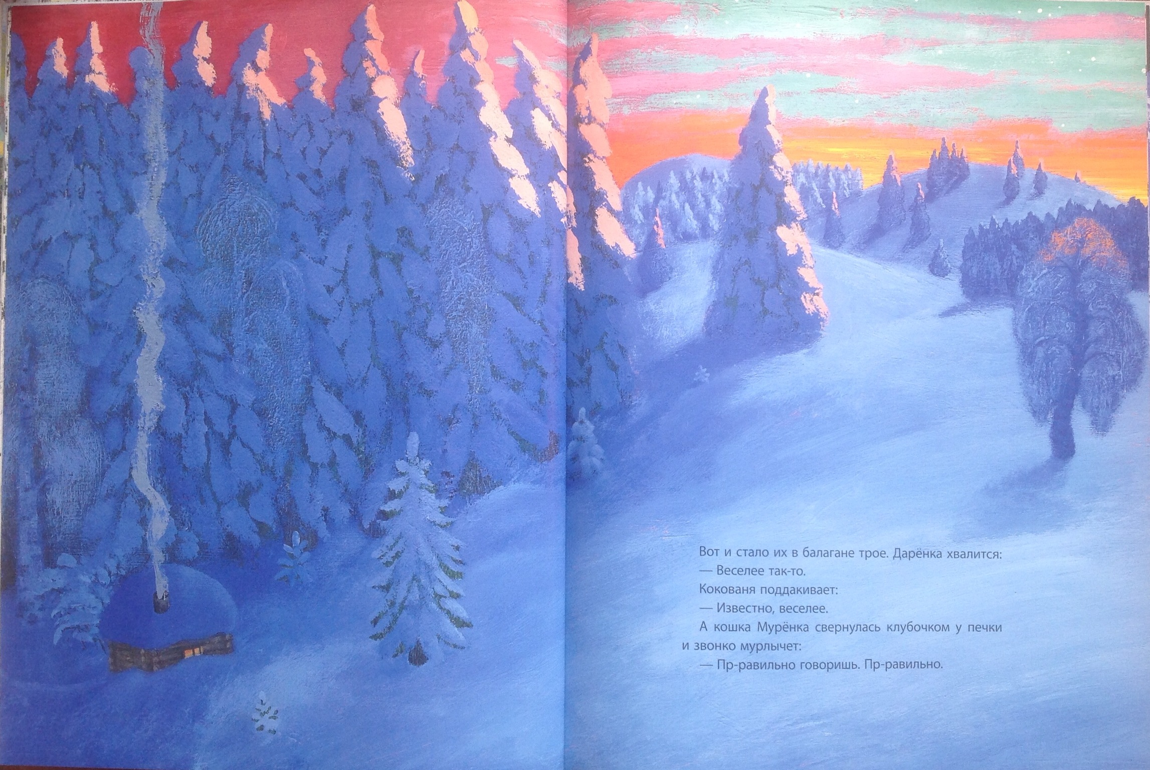 В послесловии к этой книжке Бычков рассказывает, как он готовился, как уральскую этнографию и фауну изучал, как умозаключения делал (о том, например, что Кокованя старик не дряхлый, а подтянутый с верным глазом и крепкой рукой). Этнографические подробности убили много иллюстрированных книжек своими раздутыми деталями. А эту книжку не убили — рассказ Бычкова идёт параллельно с рассказом Бажова.