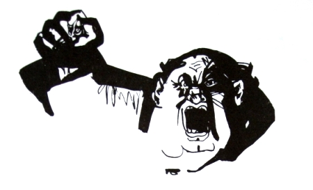 "Легенда об Уленшпигеле" — это, конечно, плутовской роман, проделки героев которого просты и наивны. Потому, наверное, роман и имеет успех у младших школьников, которые верят действенности нехитрых приёмов и думают, что сами смогли бы придумать что-нибудь позаковыристее. Есть забавный эпизод: Тилю на глазах у всех надо попасть к единомышленникам на какую-то барку так, чтобы это выглядело случайностью. Решено использовать втёмную Ламме: его задирает силач с корабля, Ламме отвечает тем же. Ему предлагают подняться на барку для драки. Ламме, конечно, "побеждает" силача под изумлённый выдох публики. Художник Кибрик к Ламме неравнодушен и выбрал для маленькой текстовой иллюстрации портрет отчаянного Ламме.