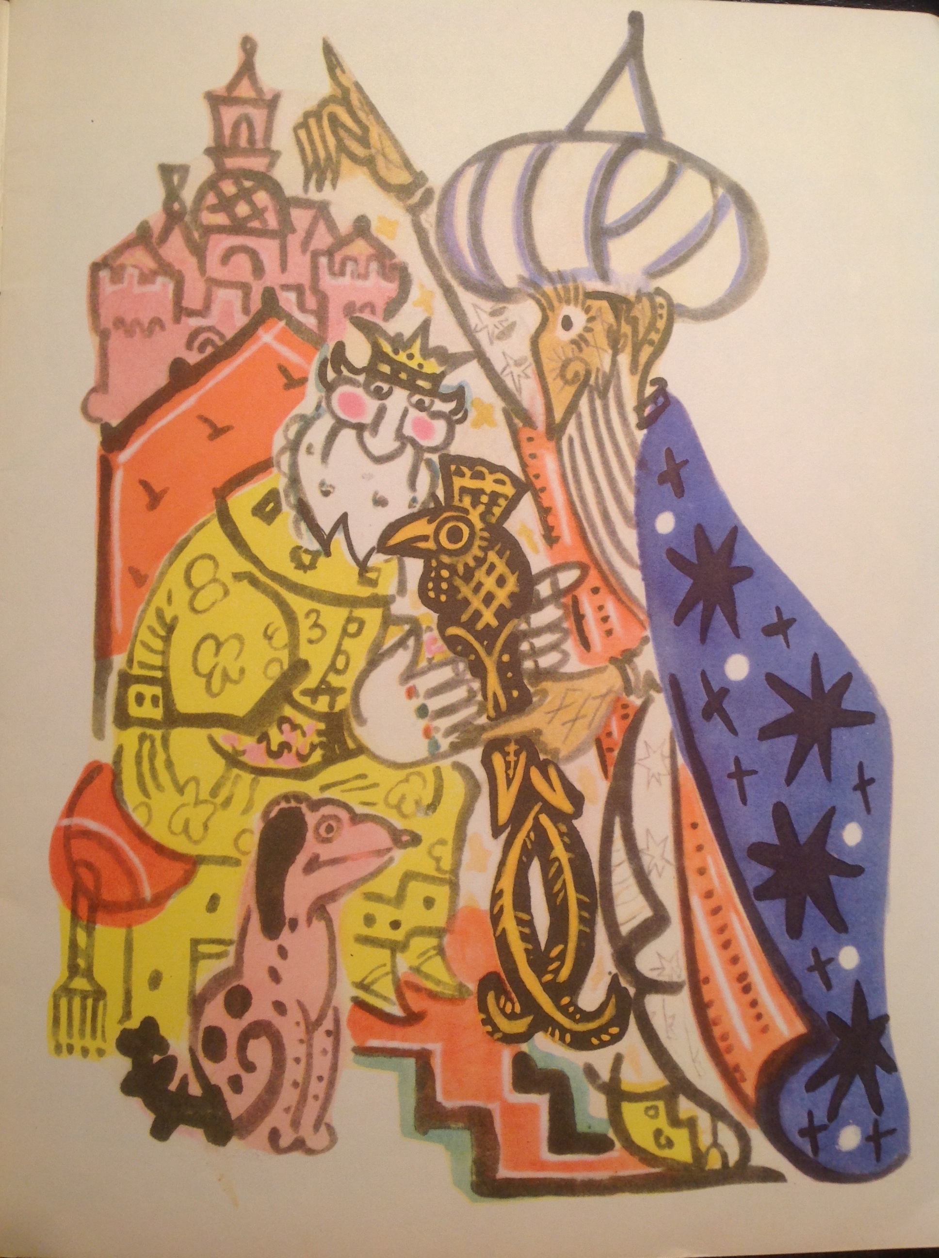 Второй вариант мавринских иллюстраций был напечатан в знаменитом сборнике пушкинских сказок 1974 года. Начал я было писать, что этого сборника у меня нет — то дорого было, то без суперобложки попадался; что суррогат у меня — современный расширенный сборник...