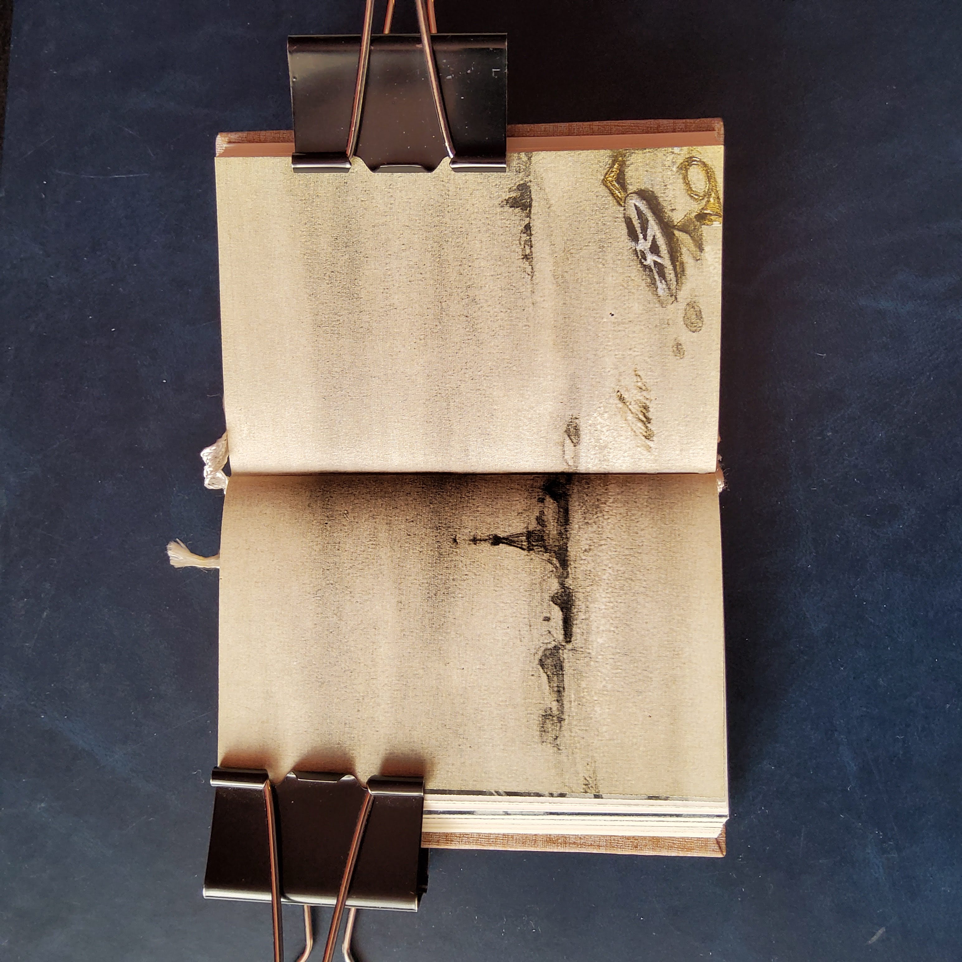 Сначала идёт иллюстрация на разворот. Для "Станционного смотрителя" это гравюра на стене почтовой станции — завершающая из серии про возвращение блудного сына. Берштейн стилизует гравюру и рисует на ней двух натуралистических мух (для атмосферы).