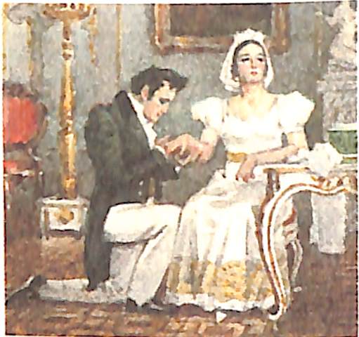 Страничная иллюстрация: на ней барышня (Полина) и какой-то военный. На шее — огромный белый крест, значит это русский орден св. Георгия второй степени. Высокая награда для генералов. Такого ордена не могло быть ни у француза, ни у жениха Полины (штатского, который добровольцем ушёл в армию явно в невысоком чине). Беда с этими белыми крестами — ляпают их художники в книгах, фильмах, спектаклях. Показывают своё невежество.