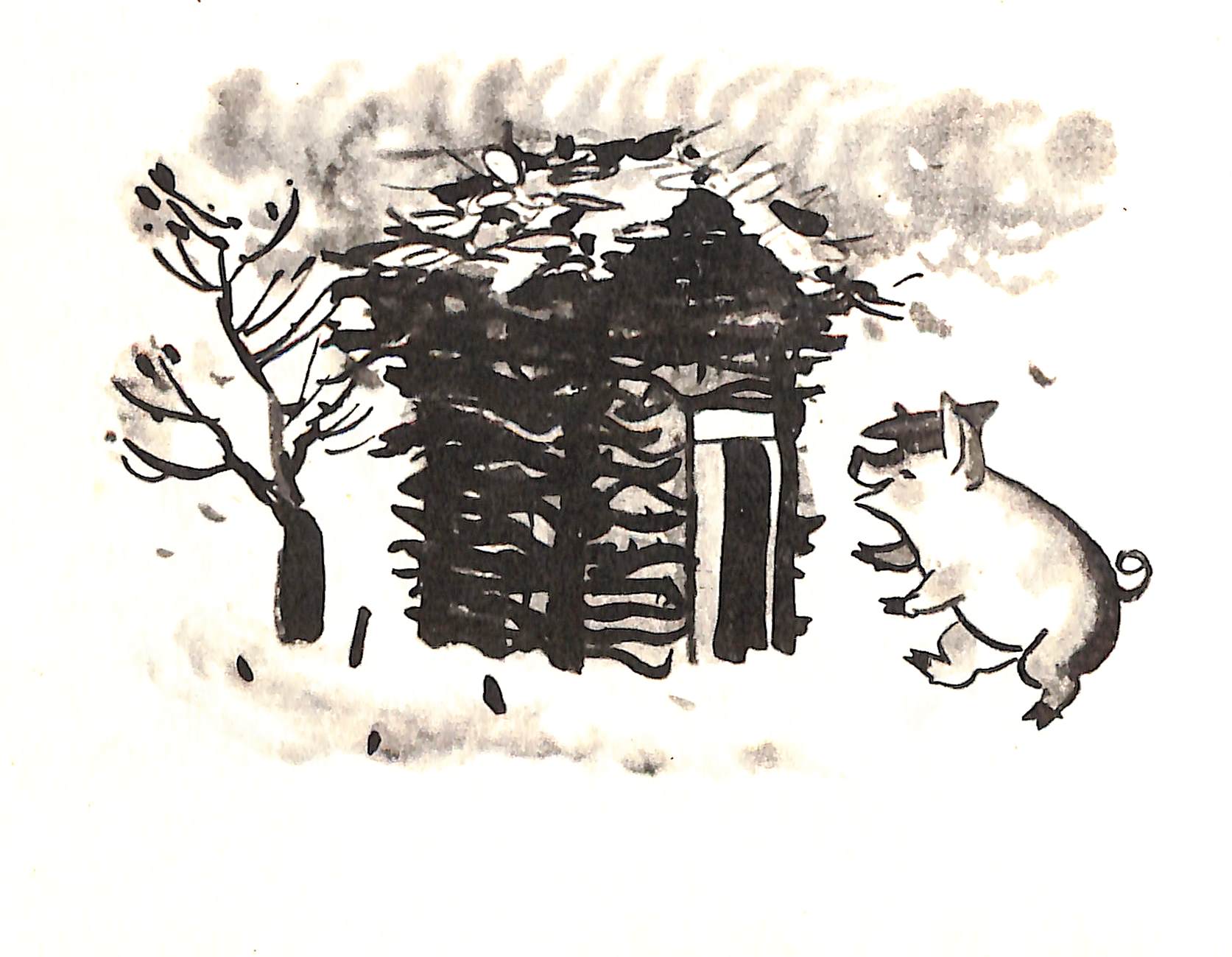 Среди иллюстраций к "Трём поросятам" особняком стоит книжка, выпущенная "взрослым" издательством "Советская Россия" в 1971 году. У меня этой книжки нет. На Фантлабе представлена: https://fantlab.ru/edition103067. Сканы иллюстраций со странички Фантлаба, а также отсюда: https://gbhfn.livejournal.com/271227.html, а также фото разворотов с интернет-барахолок (чтобы составить некоторое представление о макете).