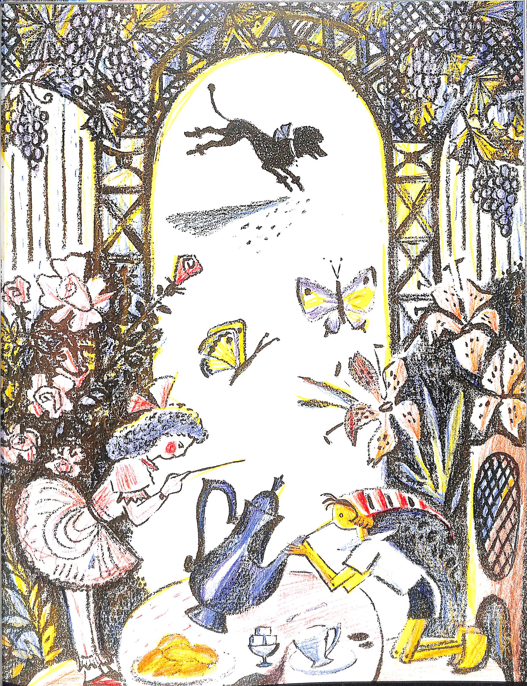 Не покидает чувство, что такой могла бы быть самая первая сюита к "Золотому ключику" в 1937 году, если бы книгу решили издавать "богато". Цветные мягкие литографии, совсем не авангардистские рисунки. И книга прочитана художником в первый раз, характер персонажей ещё не установился в результате многочисленных откликов и интерпретаций.