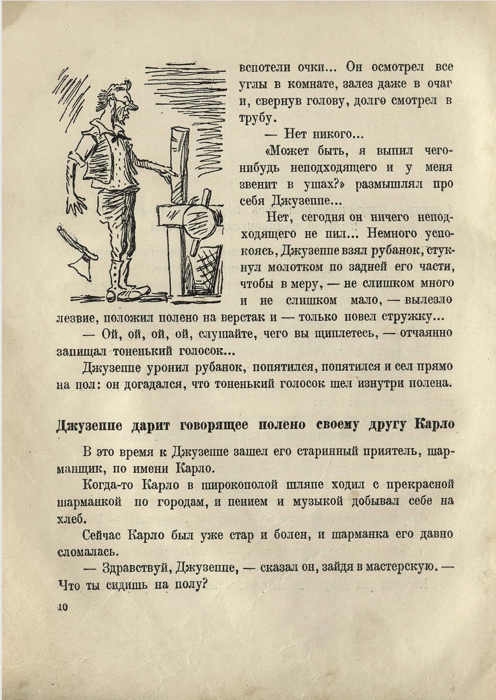 Карло выстругал щеки, потом выстругал нос — обыкновенный...