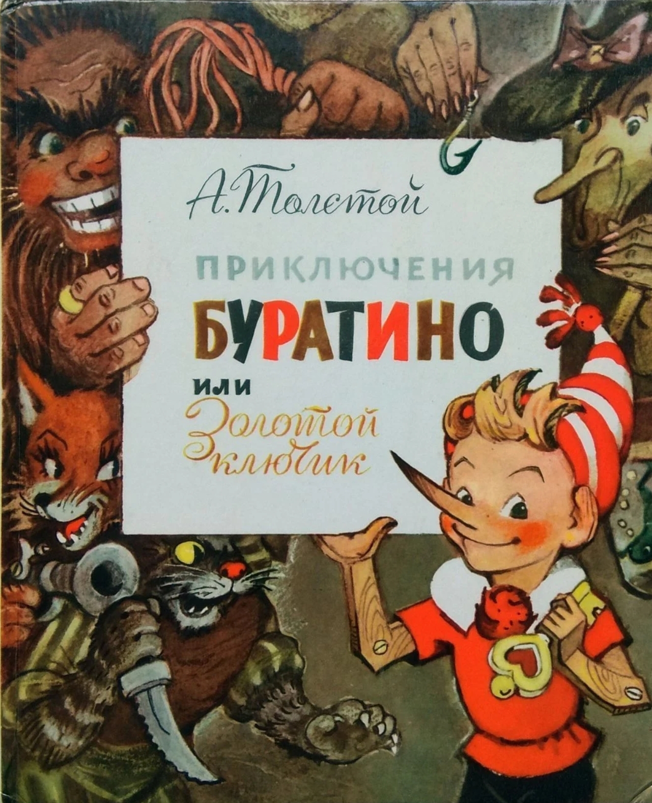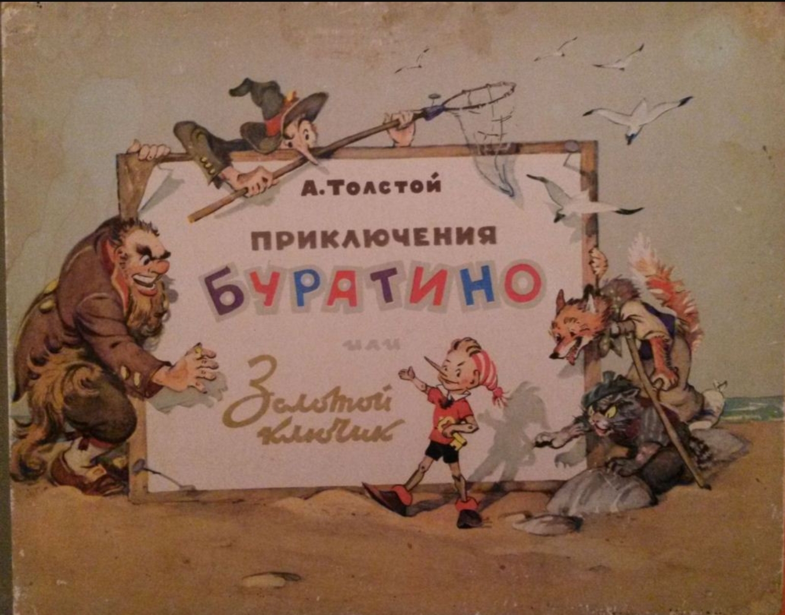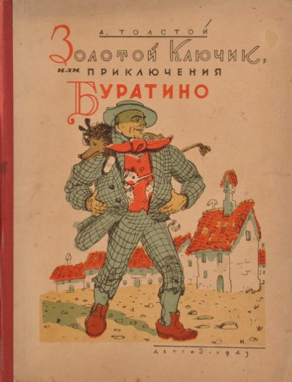 Первое издание "Золотого ключика" вышло в 1936 году — и сразу с картинками мастера — Б.Малаховского. Основные персонажи были вынесены на верхнюю крышку переплёта.