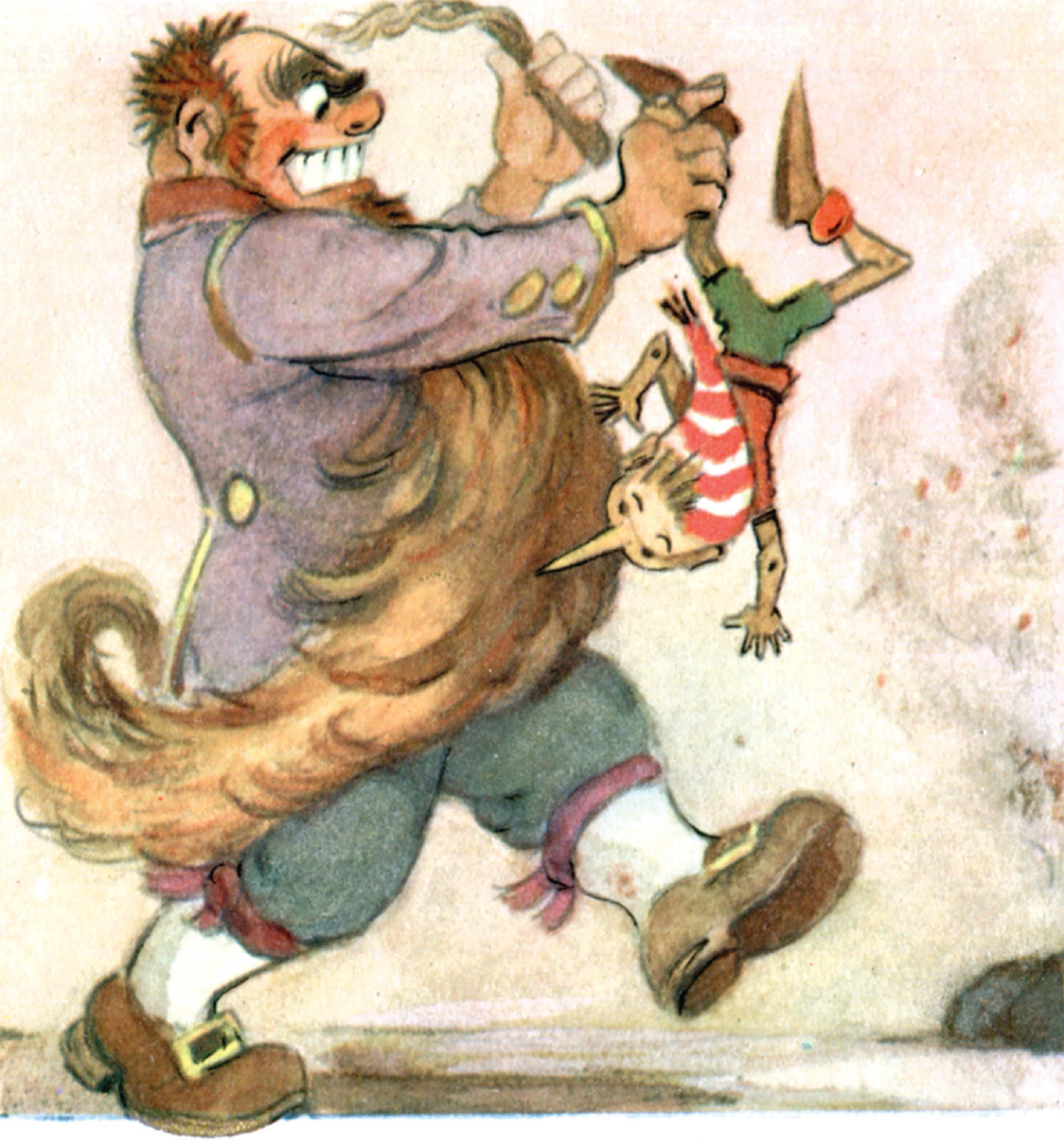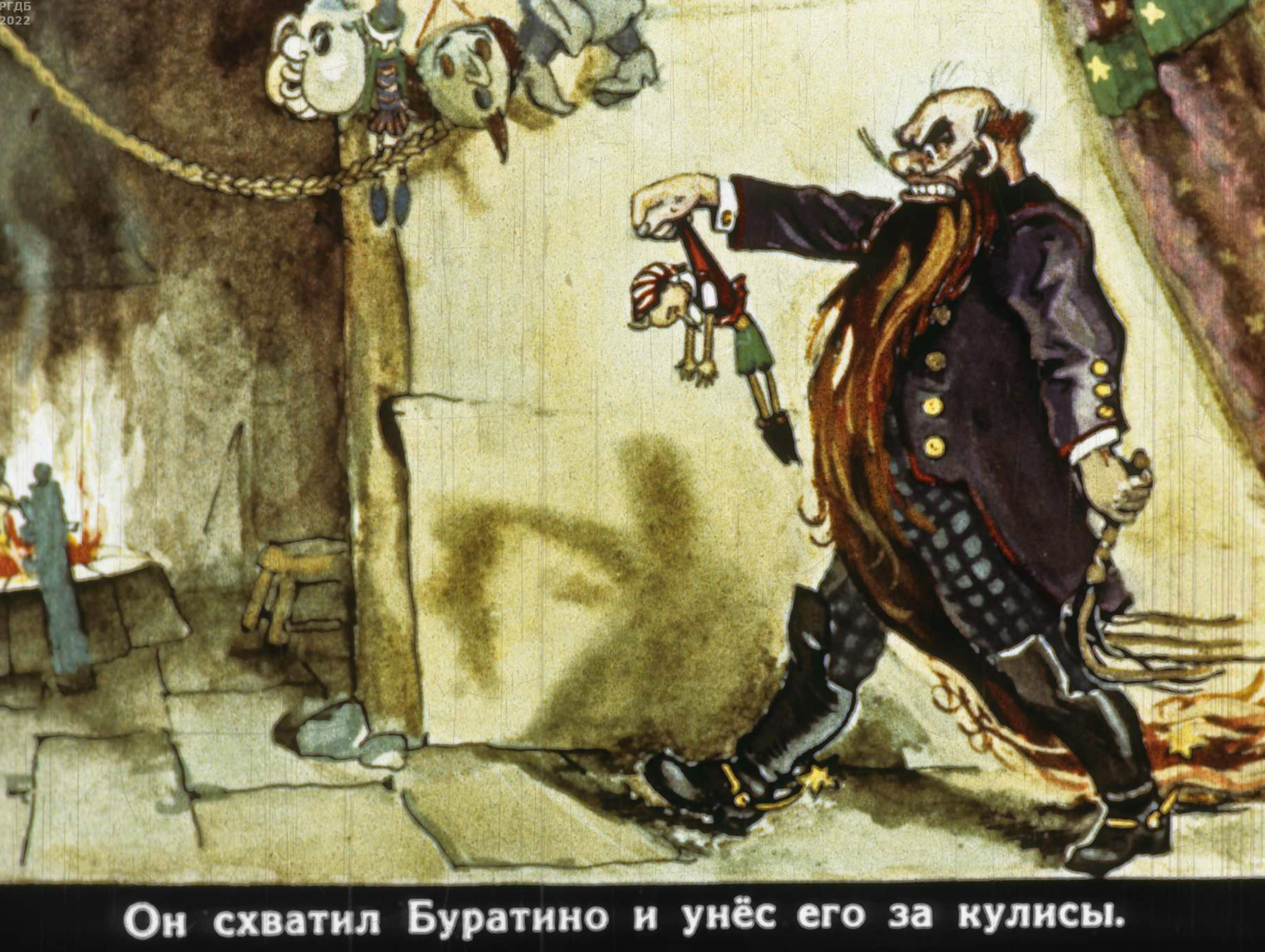 Сходство карикатурной манеры Муратова и Малаховского особенно заметно в изображении Карабаса. Но этот Карабас слишком тучен и взгляд у него растерянный.