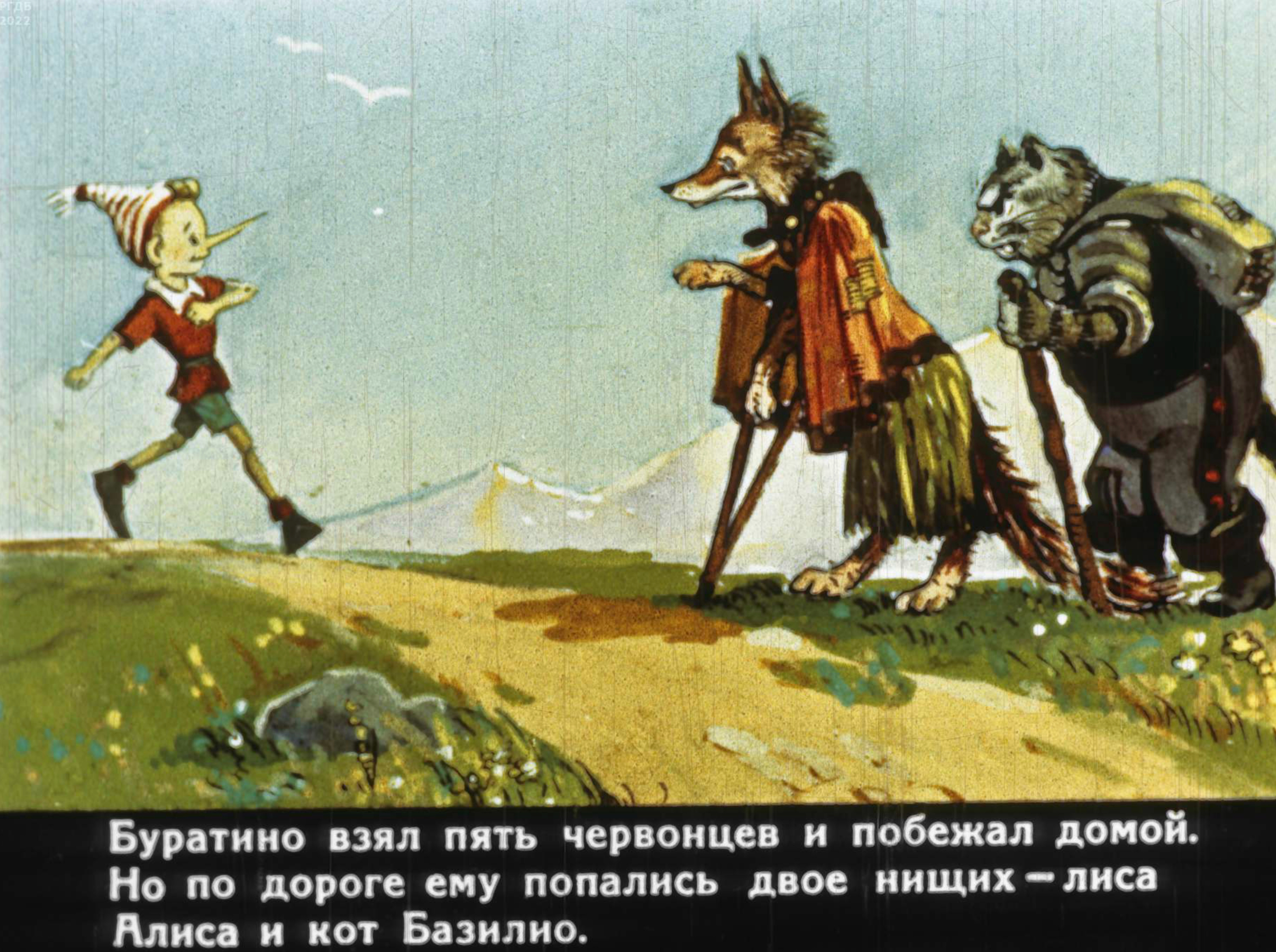 1) Забавными персонажами стали у Владимирского Алиса и Базилио (кот особенно характерным вышел — с натуры, наверное, рисовался). Позднее были только доработки деталей.