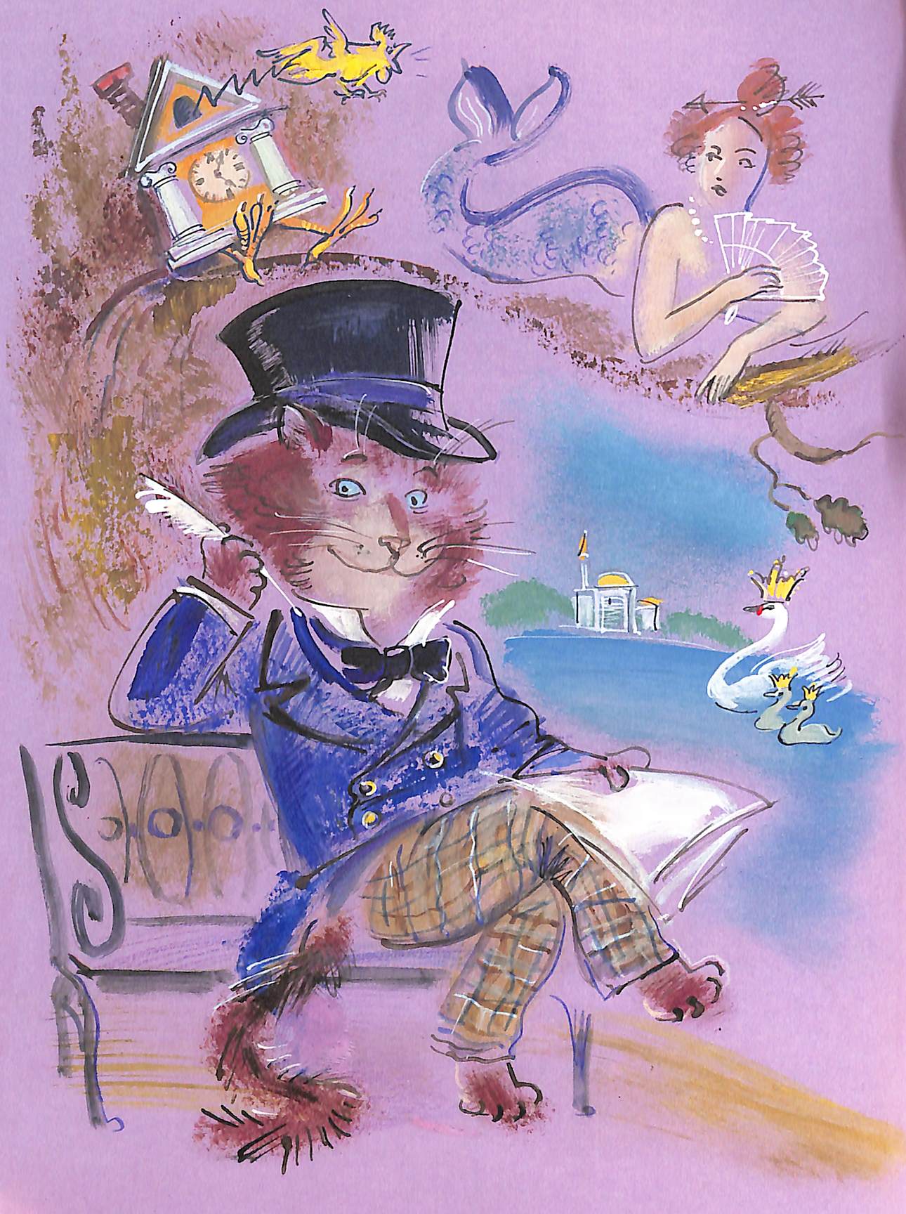 Современная художница О.Граблевская, достаточно известная. Форма её иллюстраций притягательна. Она работает в той манере, которая лучше всех удавалась у нас Трауготам: страница, залитая сочным цветом, а на ней уже краски (гуаши) пастельных тонов, воздушные контуры. Очень празднично.