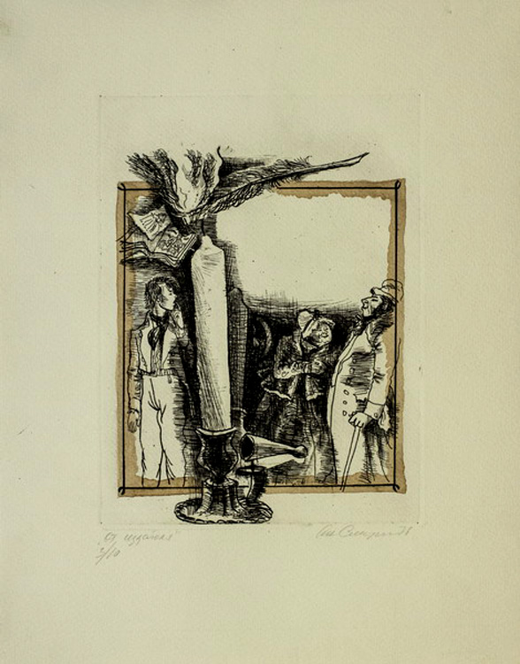 Ну и приложу скан подлинника картинки к вступлению к "Повестям". Ещё без типографского текста. С этого сайта: http://ghmak.ru/expo/picture.php?id=426&a... (есть информация о художнике).
