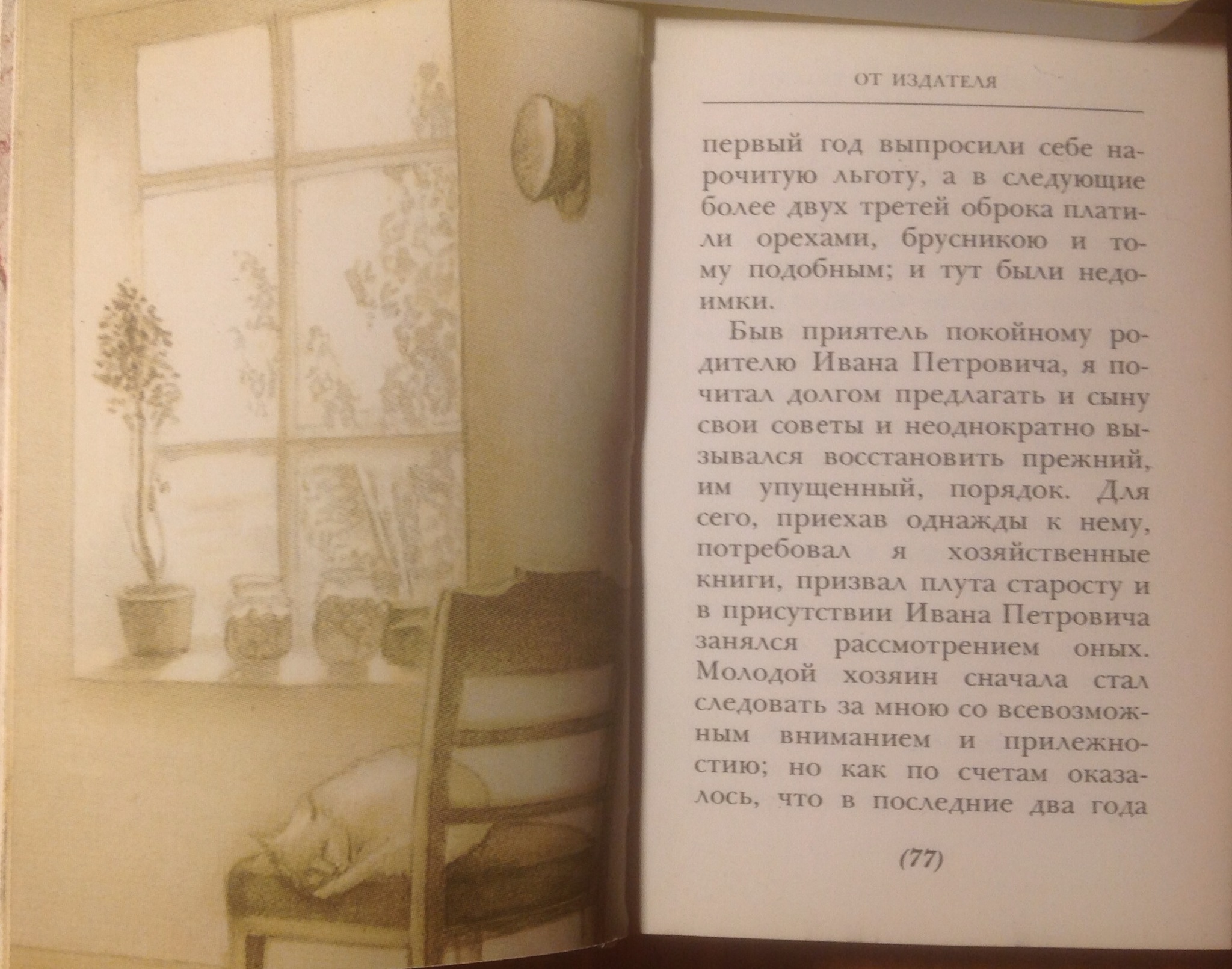 Картинки к вступлению "От издателя" даны в модном в те годы стиле иллюстрирования, где критика особенно отмечала Кошкина и Костина (у Берштейна манера ближе к Костину): старинные безделушки, пустые комнаты...