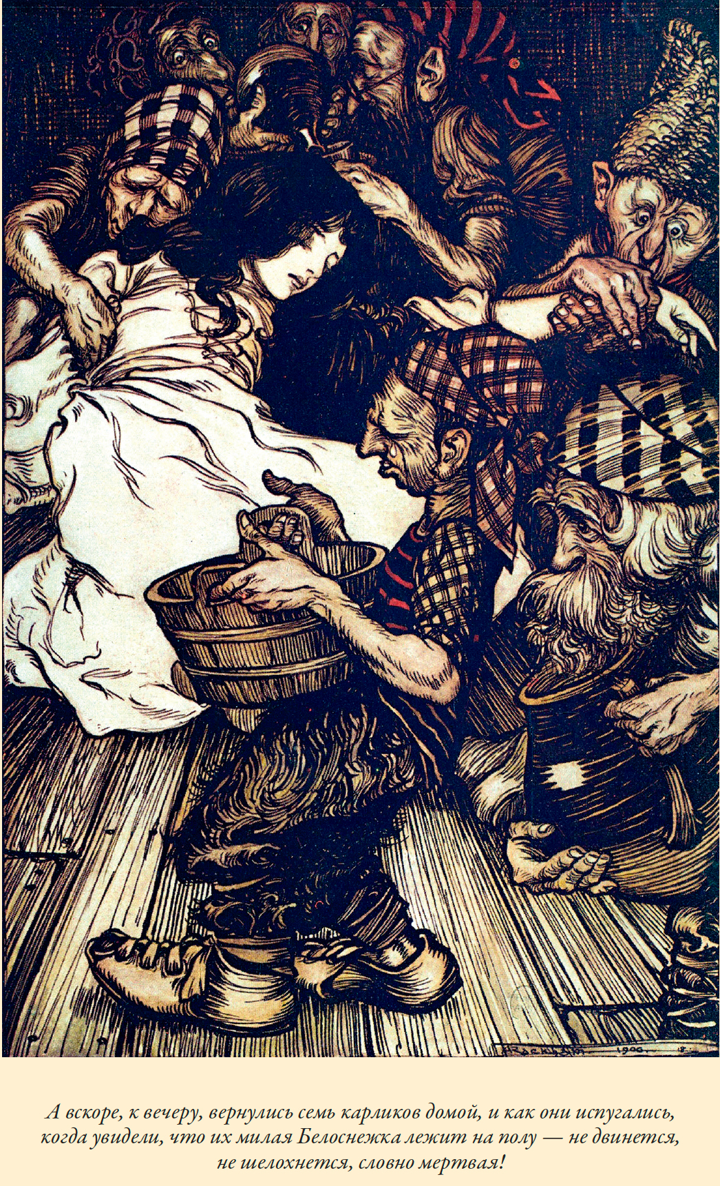 Эти эпизоды — с гномами — Вульф отрисовывает подробно. Причём, совсем не в связи с многократными спасениями Белоснежки.