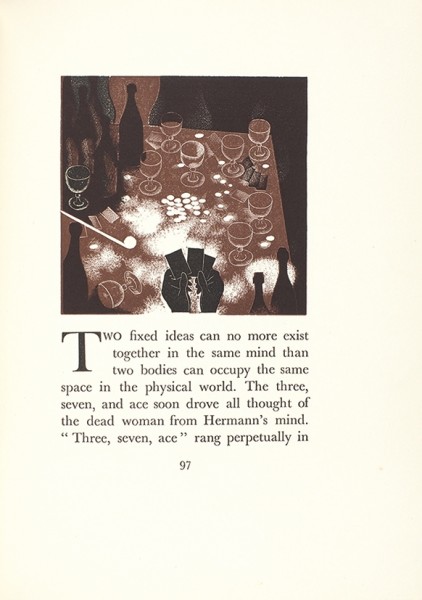Здесь к "Пиковой даме" только заставка и концовка художника А.Гончарова, творившего при всех режимах периода советской власти — при Сталине не особо удачно. А гравюра к "Пиковой даме" как раз поздних сталинских времён.