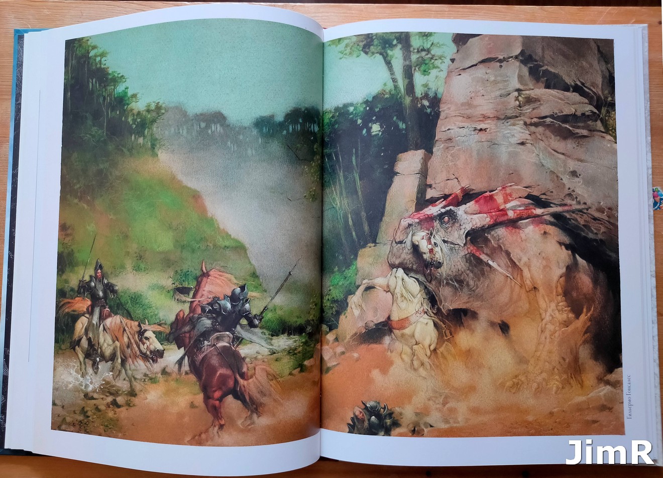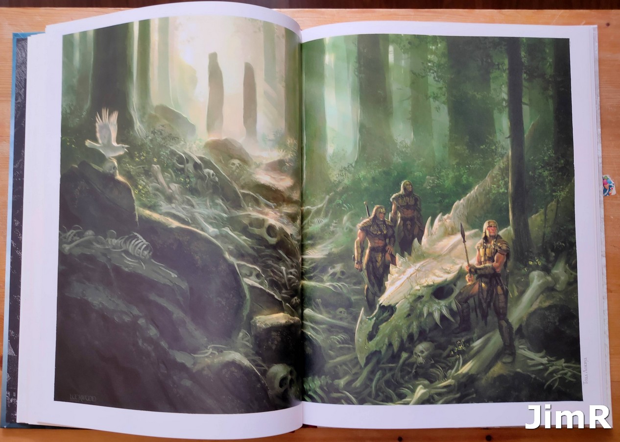 Во-первых. Акцент здесь сделан на иллюстрации. Их отношение к тексту примерно как 3:1. . Иначе все художники не смогли развернуться бы на сотне страниц. Так что это арт-бук в чистом виде. И многие иллюстрации тут разворотные.