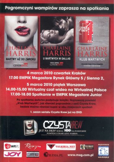 При оформлении лицевой стороны передней обложки использована работа турецкого художника КЕРЕМА БЕЙИТА/Kerem Beyit. На внутренней стороне этой обложки размещена реклама книжной продукции издательства “Rebis”. На внутренней стороне задней обложки рекламируется телесериал по произведениям американской писательницы Шарлин Харрис/Sharlin Harris, на внешней размещена реклама книг издательства “Amber”.