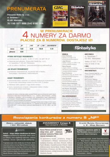 «Галереи» в этом номере нет, вместо нее печатается реклама. В журнале все так же много цвета, графических материалов, пестроты (врезки с ударными выводами). Отдел прозы открывается отечественными (польскими), а не иностранными рассказами. Все так же широк раздел книжных рецензий, крайне узок раздел рецензий фильмов, имеется скромный уголок рецензий компьютерных игр и музыки. Отдел рецензий DVD сохранил малый объем, в отделе рецензий комиксов одна страница, на которой рецензируются два комикса.