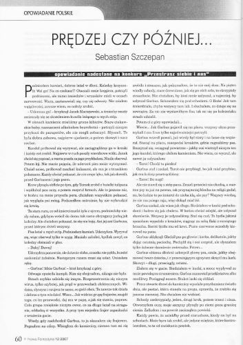 9.2. Рассказ под названием “Prędziej czy pózniej…/Раньше или позже…” написал Себастьян Щепан/Sebasnian Szczepan (стр. 60—64). Иллюстрация ТОМАША ЕНДЖЕËВСКОГО/Tomasz Jędrzejowski.