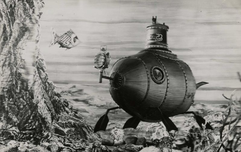 Хотя мы редко выходим из нашего чулана дальше 1945 года, в случае с экранизациями Жюля Верна нам необходимо совершить путешествие хоть и в послевоенные времена, но в довольно близкие к нам географически места, потому что речь пойдет о наших южных соседях. Правда, Голливуд и СССР претендовали на роль мест, где снимались самые интересные фильмы по мотивам романов Жюля Верна, но их всех затмил широтой своего видения и художественным мастерством чешский кинематографист. Карел Земан был специалистом по рекламе, получившим образование во Франции; именно в этом бизнесе он столкнулся с анимационным кино, которое стало его большим хобби.