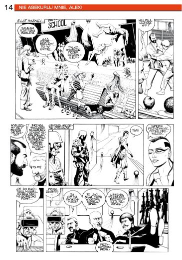 5. Напечатаны также дальнейшие четыре черно-белые панели (девятый фрагмент) нового «Фанки Коваля» (стр. 13—16). Две из них приведены ниже.