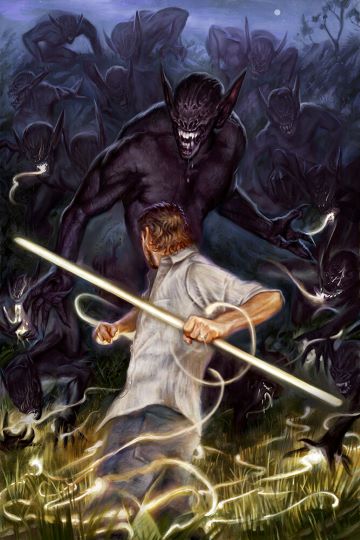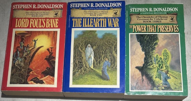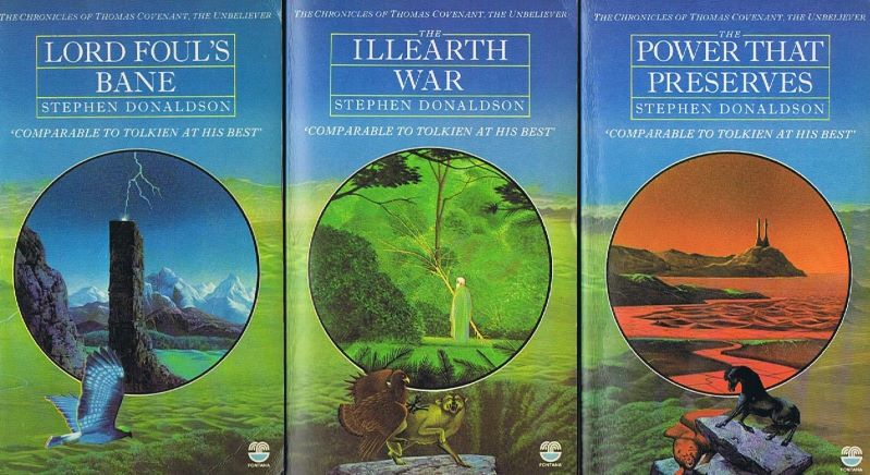 Сюжет туриста в Неверленде эпическая фэнтези способна разыграть весьма интересно. Главный герой «Хроник Томаса Ковенанта, неверующиего» Стивенa Дональдсона (Stephen Donaldson “The Chronicles of Thomas Covenant the Unbeliever”, 1977—2013) -- циничный прокаженный, который переносится на альтернативную волшебную землю, где ему приходится сражаться со Злом.