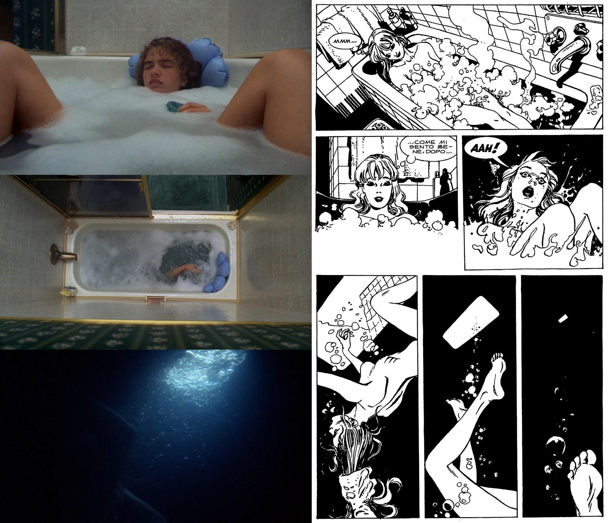 Справа: «Дилан Дог» Тициано Склави и ДЖАМПЬЕРО КАЗЕРТАНО (“Dylan Dog", No 10: Attraverso lo specchio, 1987, сцен. Тiziano Sclavi, худ. Giampiero Casertano).