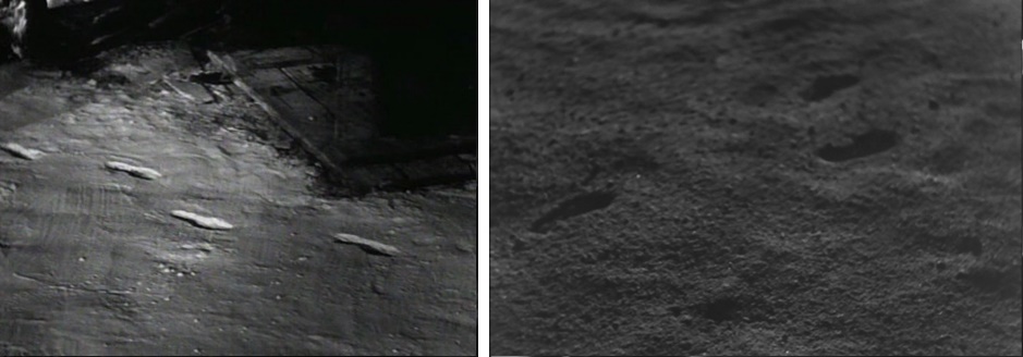 Ниже показаны в сопоставлении по пять кадров из фильмов «Человек-невидимка» Уэйла (слева) и «Появление человека-невидимки» Набуо Адати (справа).