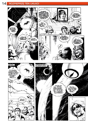5. Напечатаны дальнейшие четыре черно-белые панели нового «Фанки Коваля» (стр. 13—16). Две из них приведены ниже. Комикс называется “Rozpierzę ten układ/Раздолбаю этот пакт”.