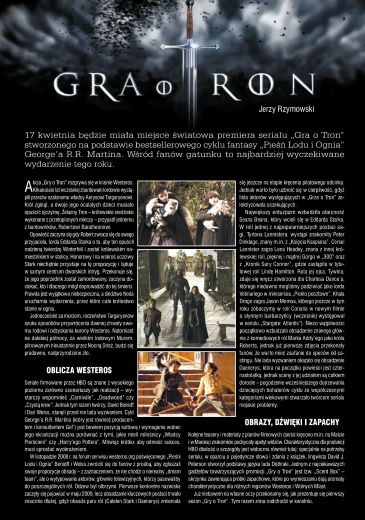 6. По случаю грядущей мировой премьеры сериала «Игра престолов», основанного на цикле «Песнь льда и огня» Джорджа Р.Р. Мартина, размещен небольшой соответствующий анонс (стр. 71—73).