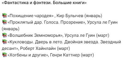 | Издания, издательства, электронные книги > Планы издательств на фантастику и фэнтези, 2023. Факты, слухи, обсуждение > к сообщению |