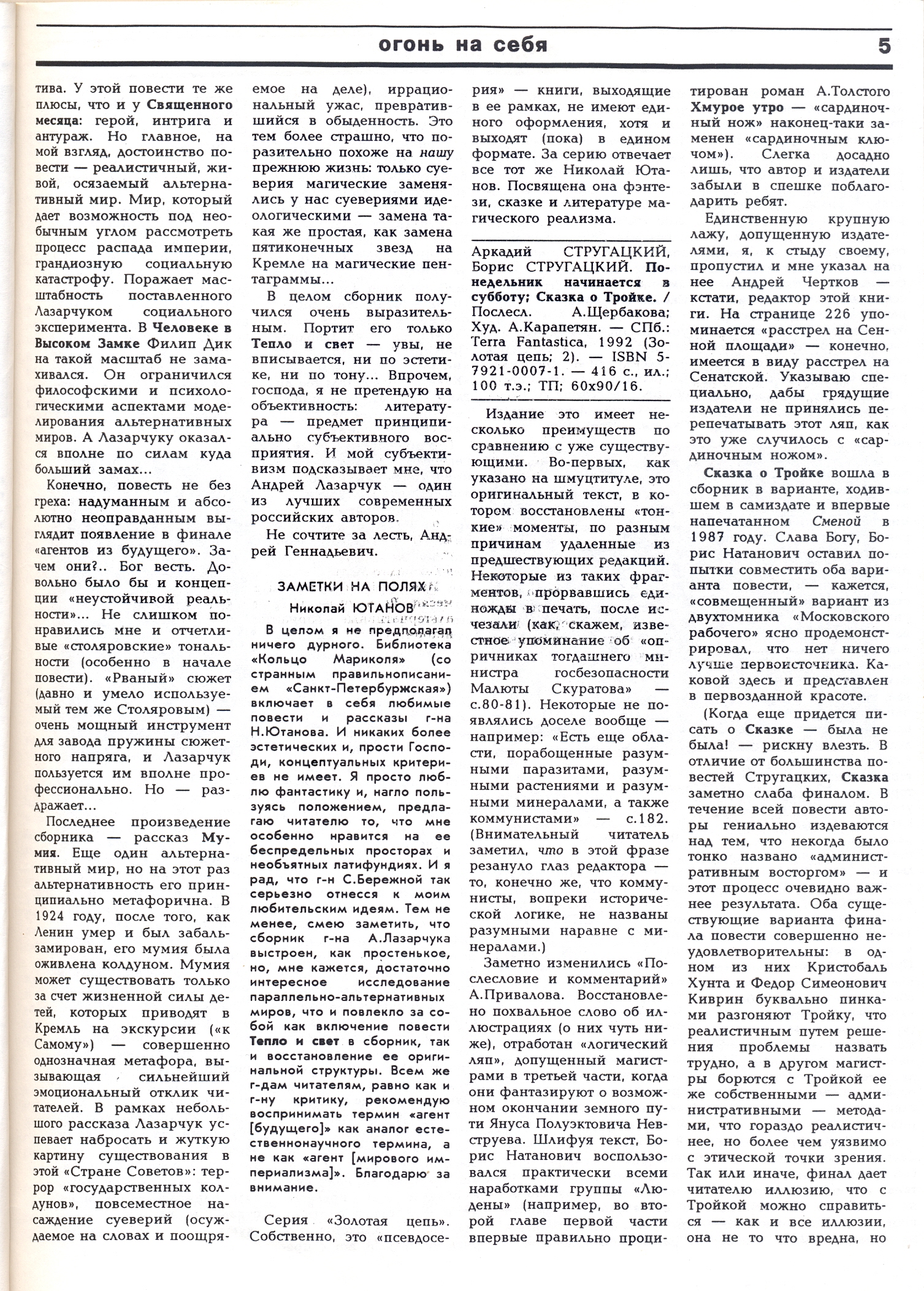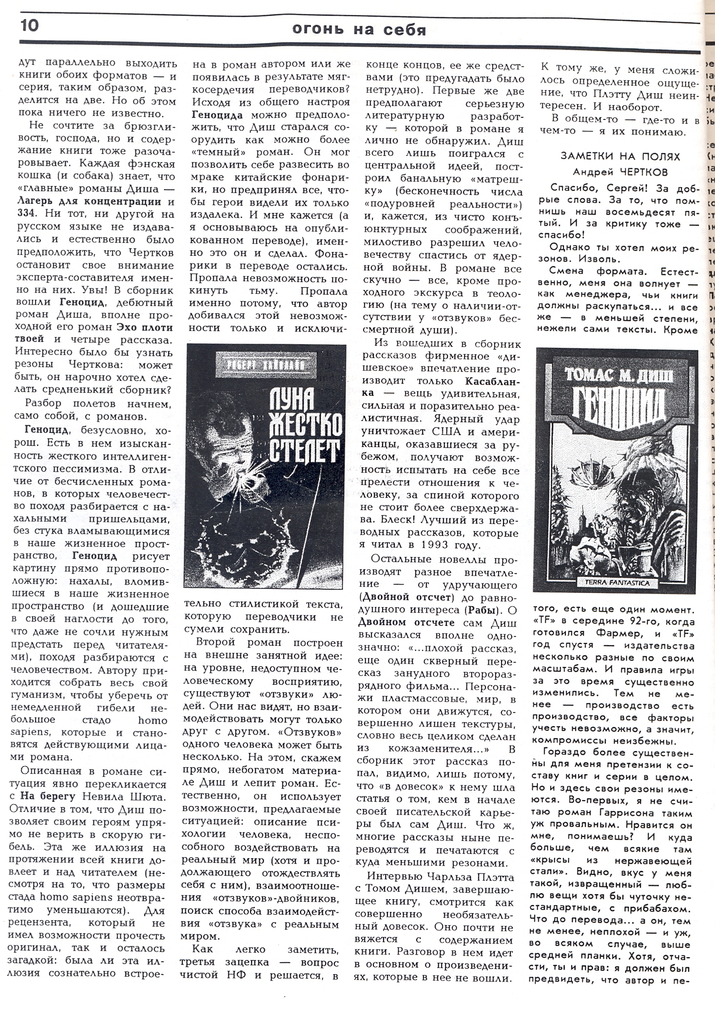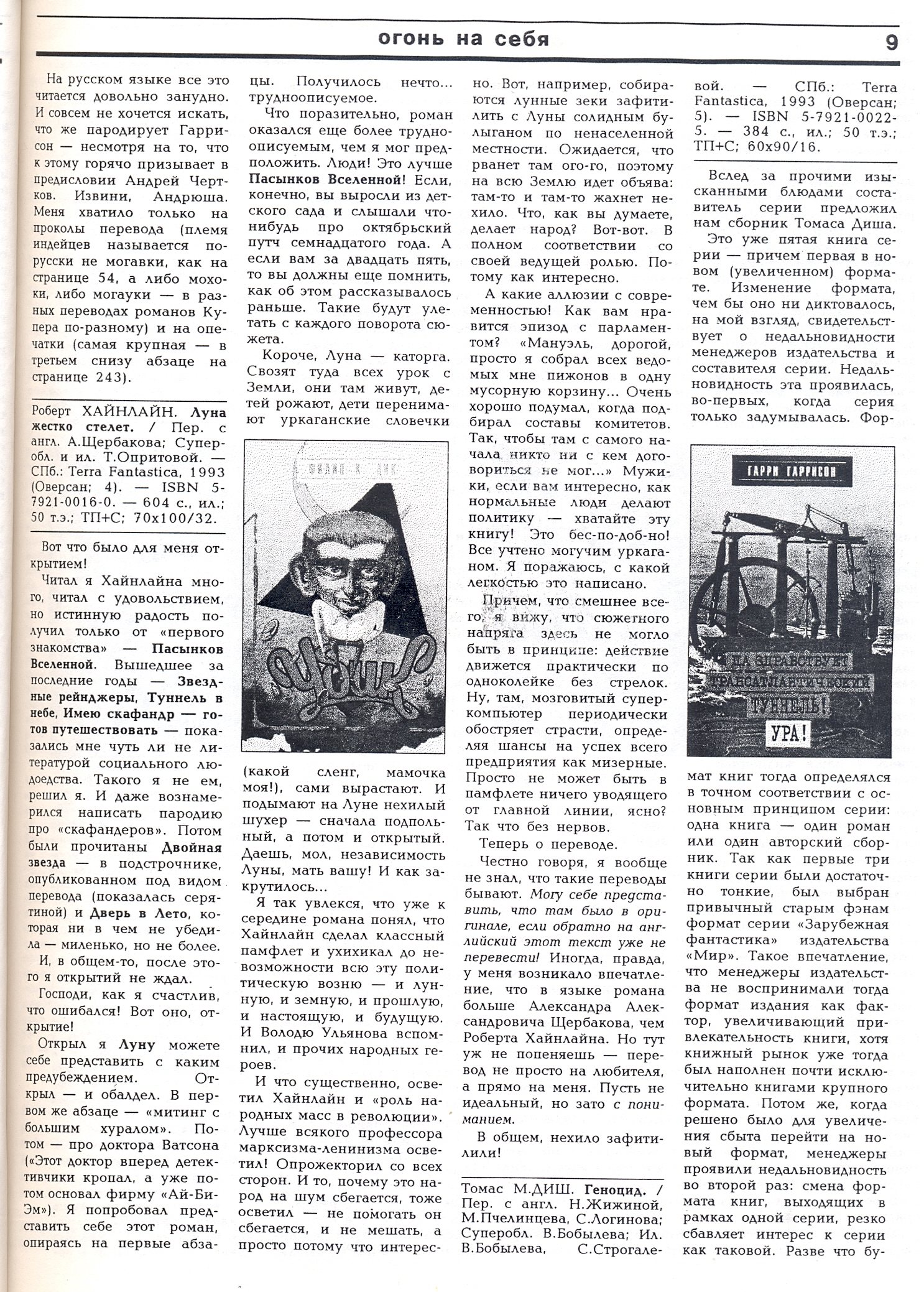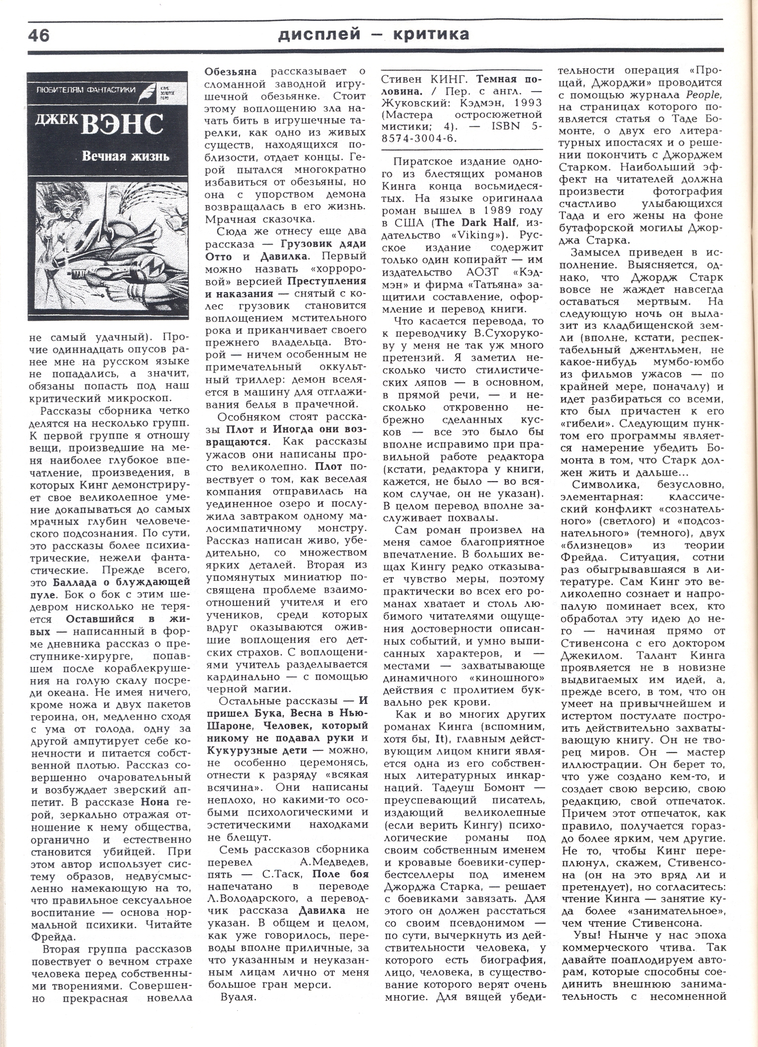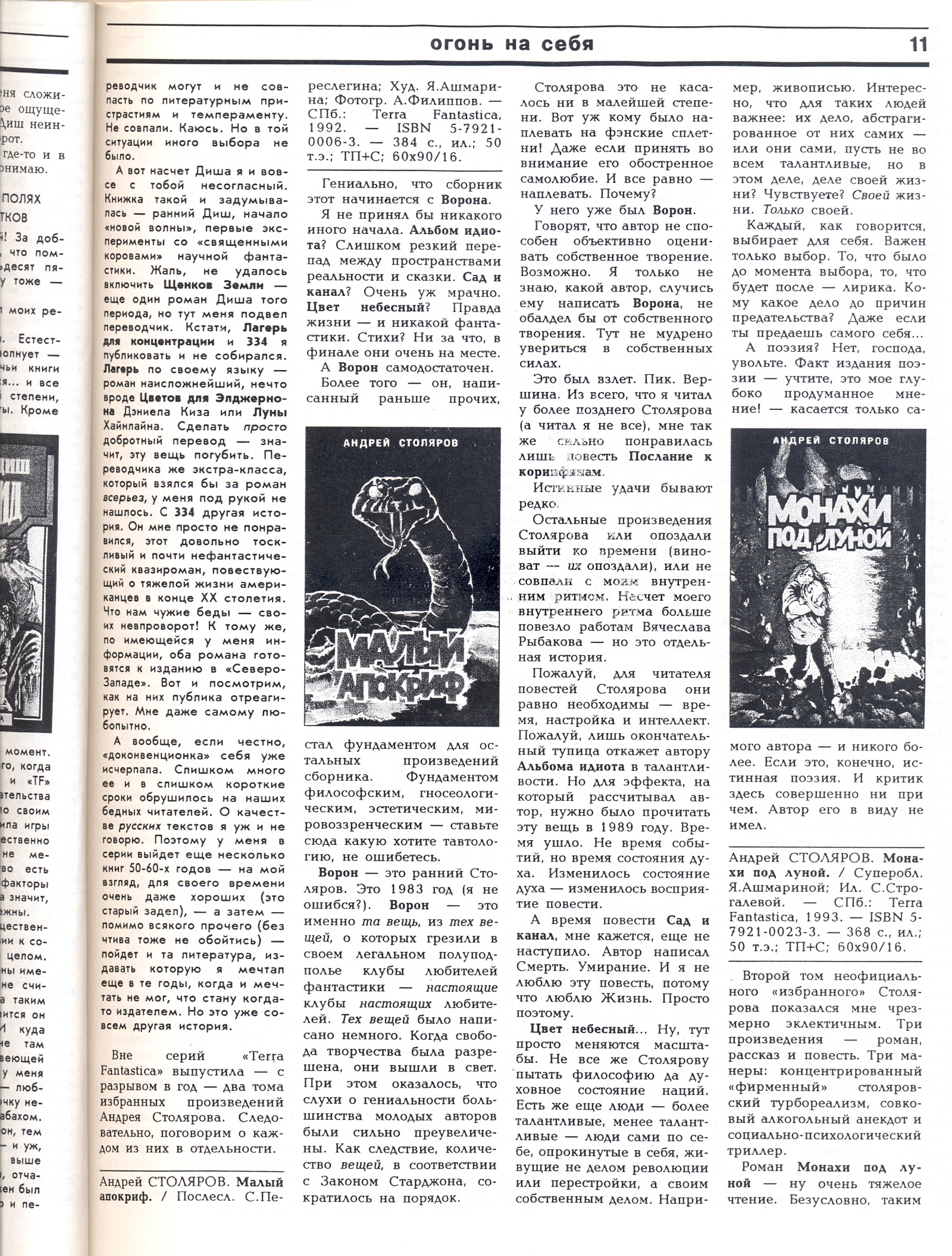И в "Оверсане", и в "Интеркоме" "дисплей-критику" писал, как правило, Бережной... ну, иногда еще и я — под псевдонимом, естественно, а еще — Борис Миловидов, Андрей Николаев и Александр Етоев. А в этом 5-м номере в эту славную команду влился еще и Дима Старков, который тогда примкнул к нашей команде, в основном, как переводчик (переводы Брюса Стерлинга и Роберта Хайнлайна).