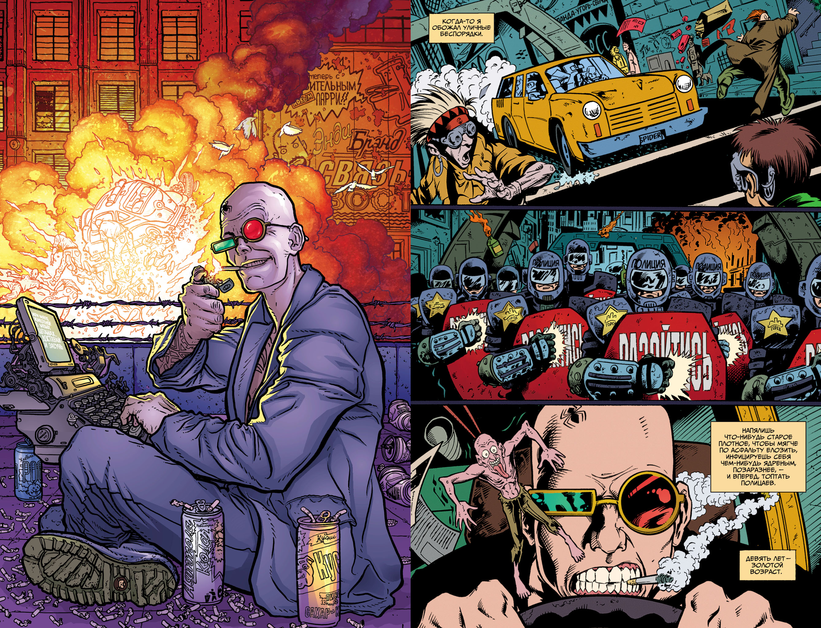 «Трансметрополитен» стал первой серией комиксов, которая срастила антураж и атмосферу киберпанка с новообретенной свободой большого графического романа, подконтрольного автору, а не корпорации, — как хакер в зеркальных очках, засев в пустом, брошенном здании, втыкает себе в мозг кустарный адаптер, чтобы выйти в киберпространство.